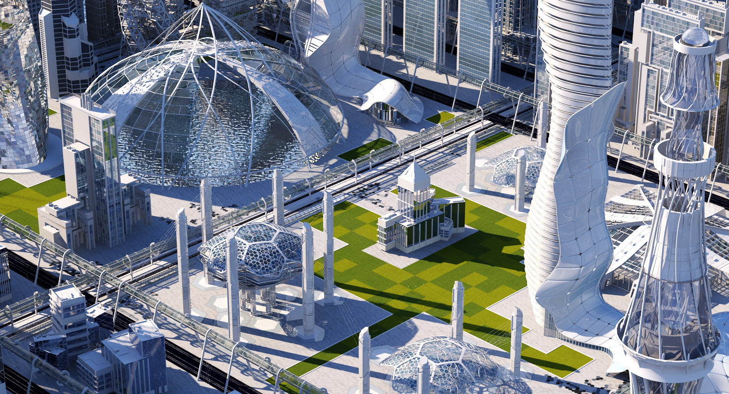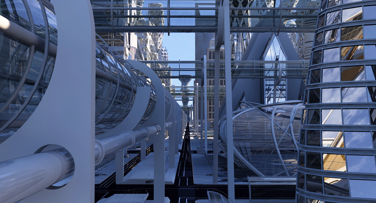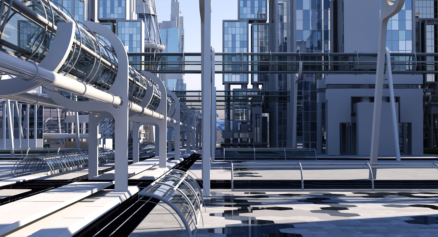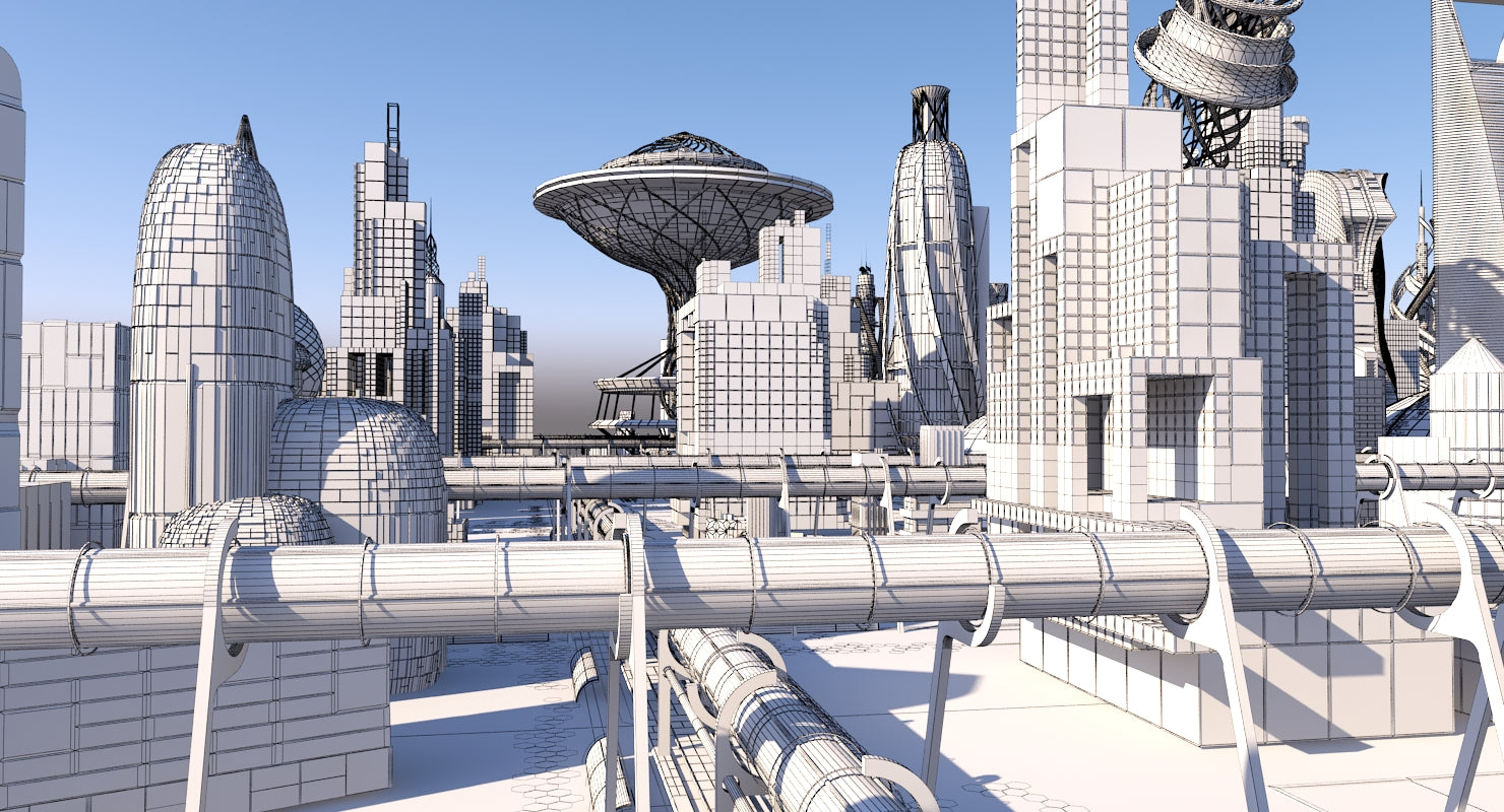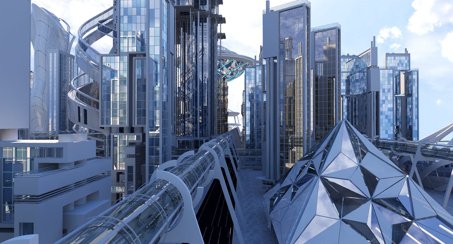 This scene contains 125 highly detailed futuristic Architectural structures and futuristic transport networks.