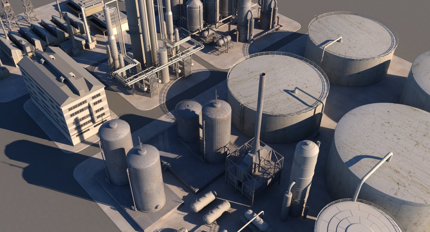 Detailed 3d model of an oil refinery
